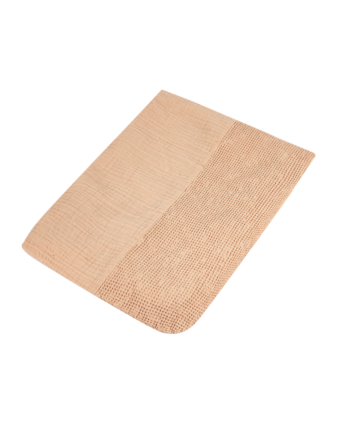 - Double texture: the elegance of washed honeycomb combined with the softness of double organic cotton muslin