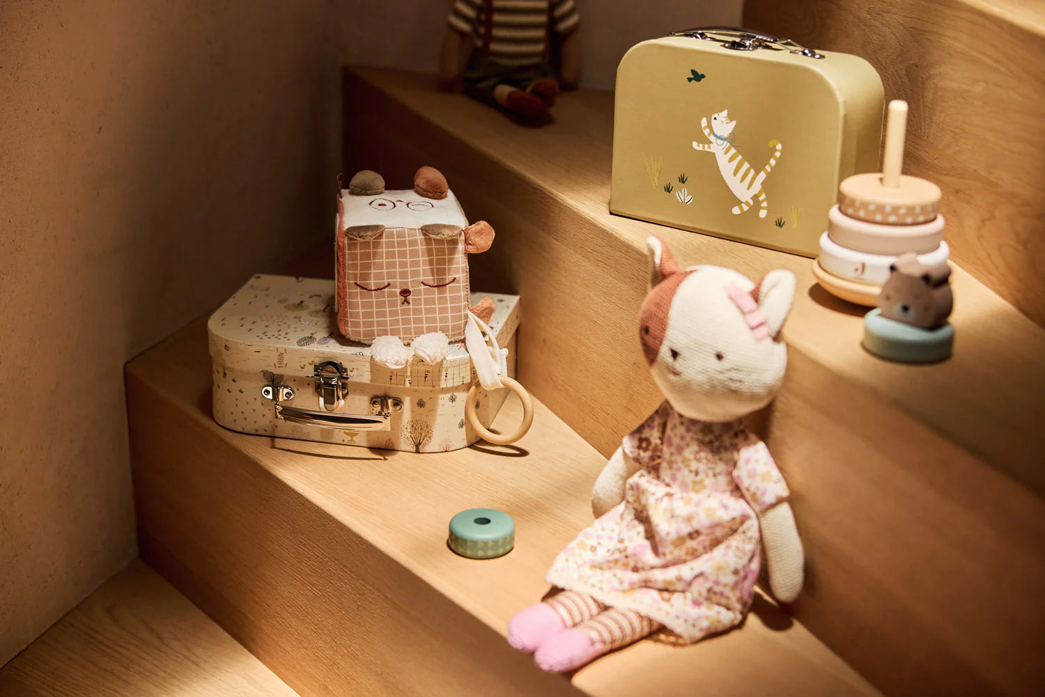 This soft activity book from the Tiny Park collection is specially designed to stimulate your baby’s senses. It features four pages, each with a cute animal character like a bunny, bird, duck, or swan. The pages are filled with crinkly materials that encourage exploration and play. A mirror and little trees on the pages add even more interest. A perfect toy to help develop your little one’s senses and motor skills!