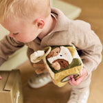 This soft activity cube from the Tiny Park collection is a magical toy for your little one. Featuring cute animals like a cat, dog, and owl, and interactive elements such as crinkly ears and a mirror, it stimulates your baby’s senses and motor development. A fun and educational cube, perfect for hours of play in the playpen or on the go!