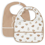 These waterproof bibs from the Miffy and Friends collection keep your little one dry during mealtime. The waterproof material prevents spills from soaking through, and the cute Miffy and friends print adds a cheerful touch. This 2-pack ensures you always have a clean bib on hand. Handy, practical, and super cute!