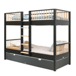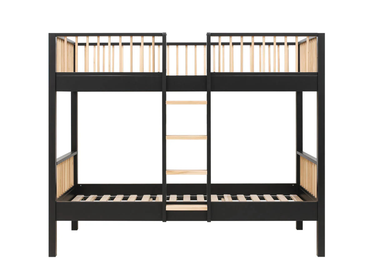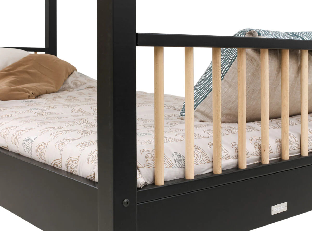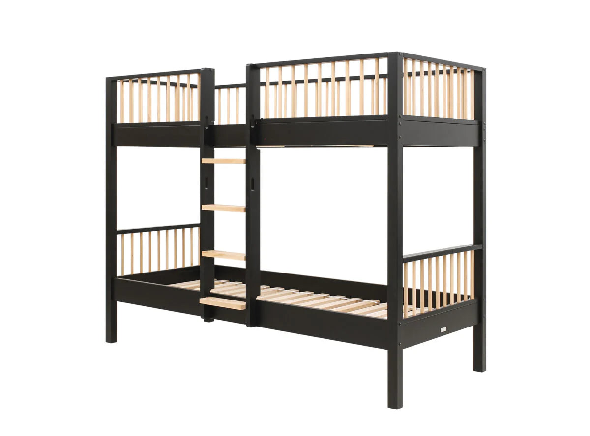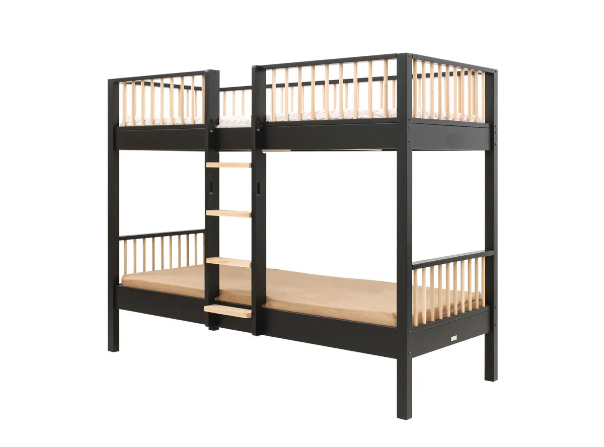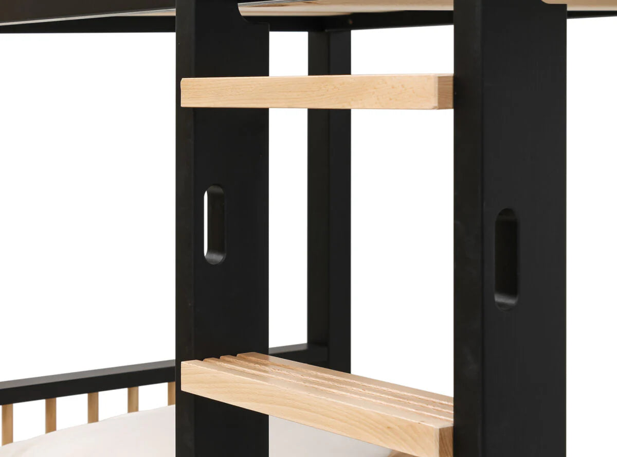 Introducing the Ivo Bunk Bed, a complete setup that includes a versatile trundle/storage drawer, crafted in a sophisticated blend of black, anthracite and natural tones. Made from durable beech wood and thick MDF sourced from European forests, this bunk bed offers both style and functionality from the start.