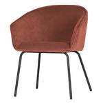 Add a touch of charm and sophistication to any space with this modern velvet chair, designed to serve beautifully as a dining seat or desk companion. Upholstered in a rich raspberry red velvet, its smooth texture and bold colour make a statement, while the sleek black steel legs provide a strong, minimalist foundation.