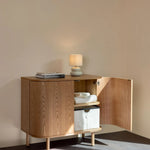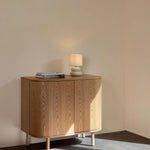 The timeless design of the Yume dresser, combined with the handcrafted curved doors, exudes an elegant charm that fits perfectly not only in the nursery but also in other living spaces. The legs are made of solid ash wood, while the doors are crafted from ash-veneered MDF, ensuring a durable yet refined construction.
