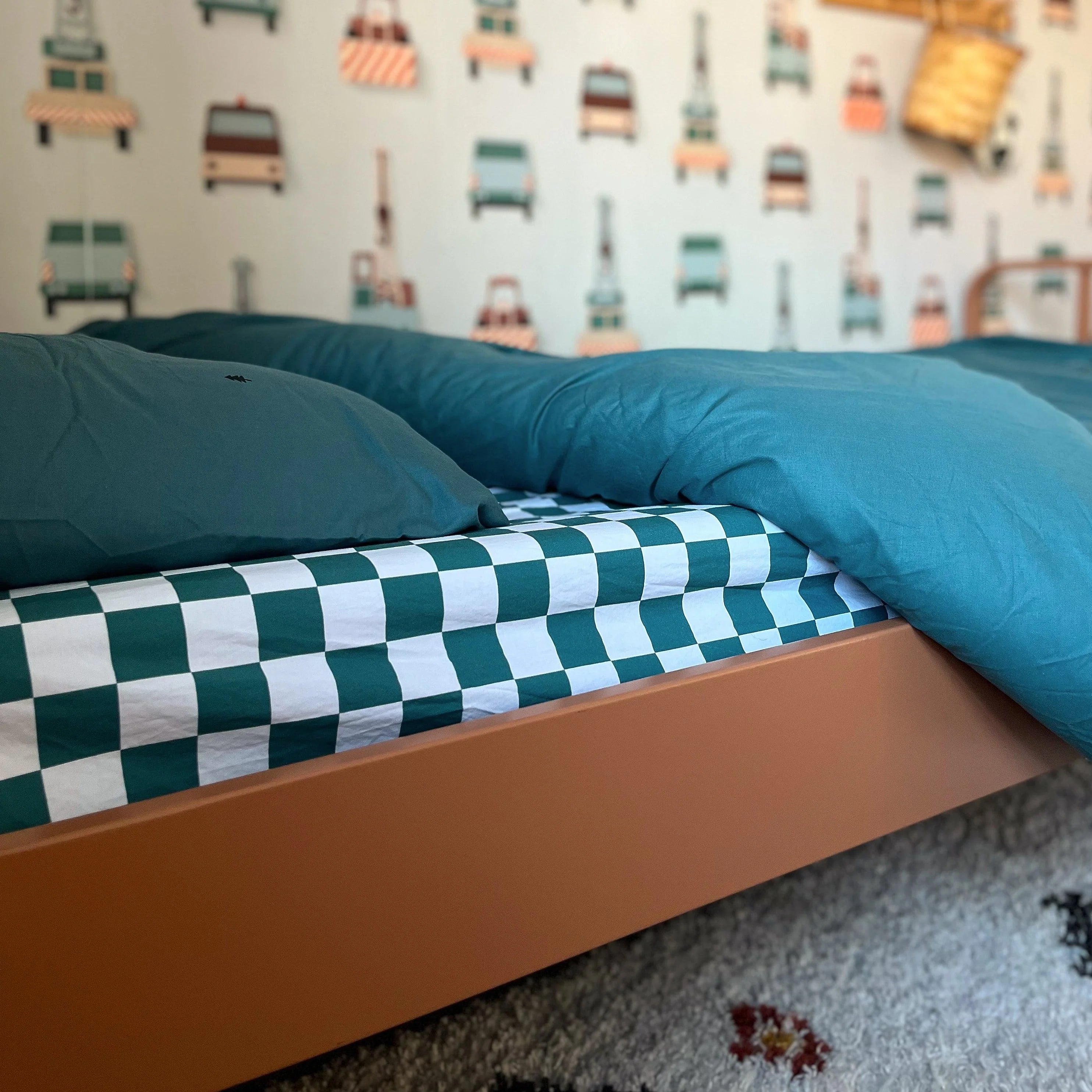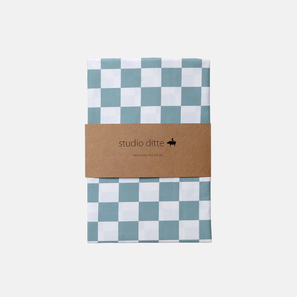 Studio Ditte Fitted Sheet Petrol Green Blocks