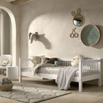 The Forrest Cabin / Sofa Bed in white is made from high-quality European beech, combining durability with classic elegance. Beyond a comfortable place to sleep, it provides a cozy corner for reading, relaxing, or enjoying quiet moments. With optional accessories, this cabin bed can be transformed into a delightful house bed