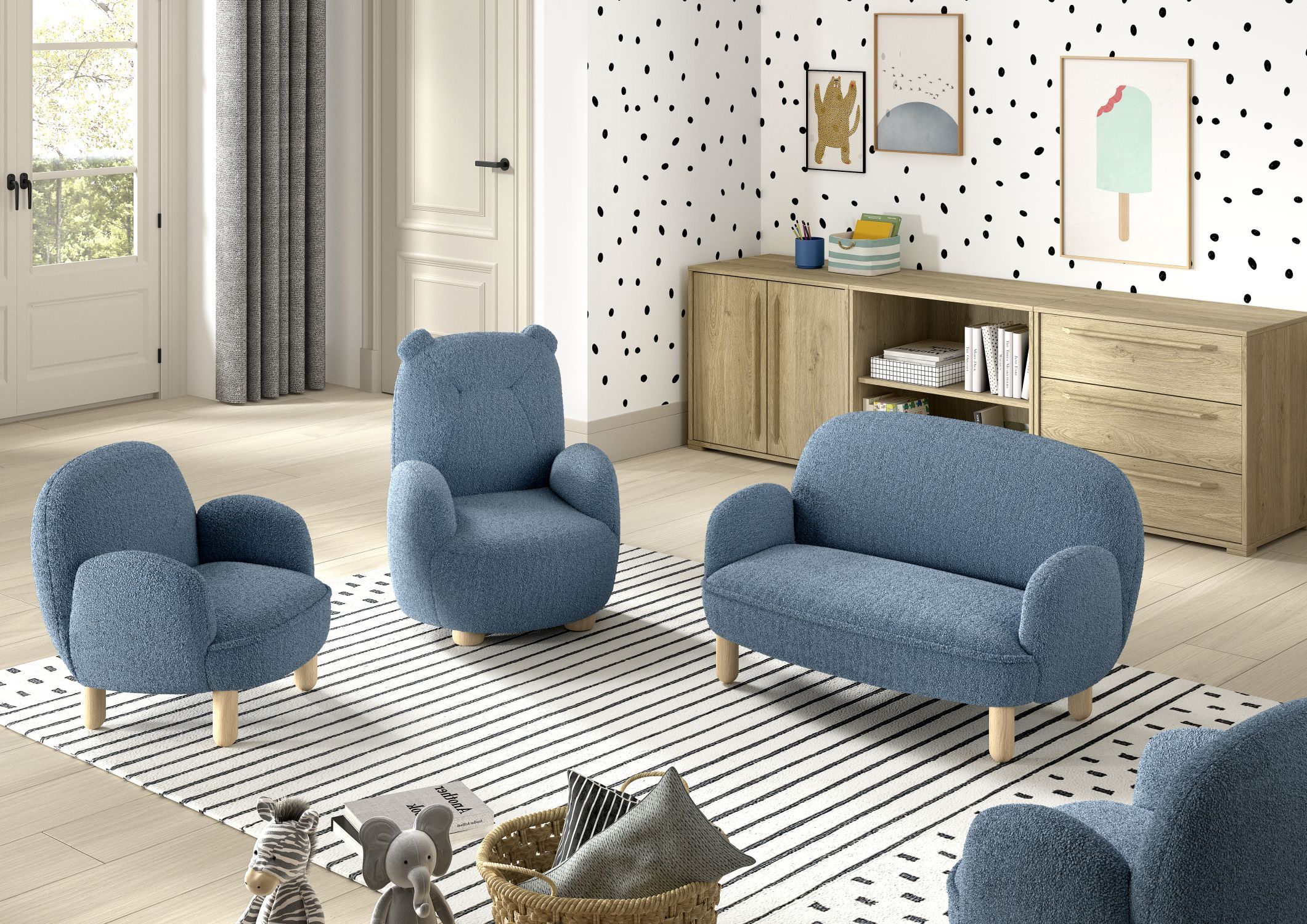 This charming blue children’s armchair from the ROCKY collection blends playful style with exceptional comfort. Wrapped in soft bouclé fabric and designed with gentle rounded shapes, it creates a cozy spot for your little one to relax, read, or daydream. The sturdy wooden legs add a natural touch while providing excellent stability and durability. A stylish addition to any nursery or kids’ room and just as perfect in the living room, giving your child their own comfy place, just like the grown-ups!