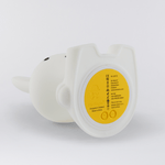This is the custom replacement LED light source for Miffy First Light, Boris First Light, Snuffy First Light, and Lion First Light with a yellow bottom. Warm white light only, with 6 dimming steps including the nightmode. Battery lasts 8-120 hours depending on the brightness setting. Fully charged after max. 6 hours.